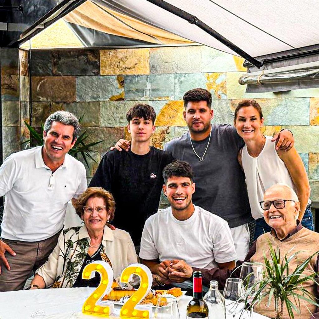 Uspon Carlosa Alcaraza i njegove pobjede na Grand Slam turnirima sa nešto više od dvadeset godina ne mogu se razumjeti bez snage njegove porodice, čiji članovi, zajedno s njegovim trenerom, predstavljaju njegov sistem podrške izvan teniskog terena. Rođen u Murciji, u selu El Palmar, Alcaraz je posljednje godine proveo u Villeni, svojoj trening bazi, ali se postepeno vratio u rodno mjesto i bliže porodici: njegovi roditelji, braća i djed su mu veoma važni.