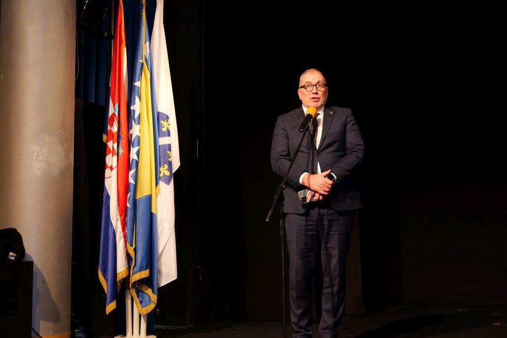 Svečana akademija otvorena je intoniranjem himne Republike Hrvatske i himne Bosne i Hercegovine, nakon čega je prikazana video čestitka člana Predsjedništva Bosne i Hercegovine Denisa Bećirovića.