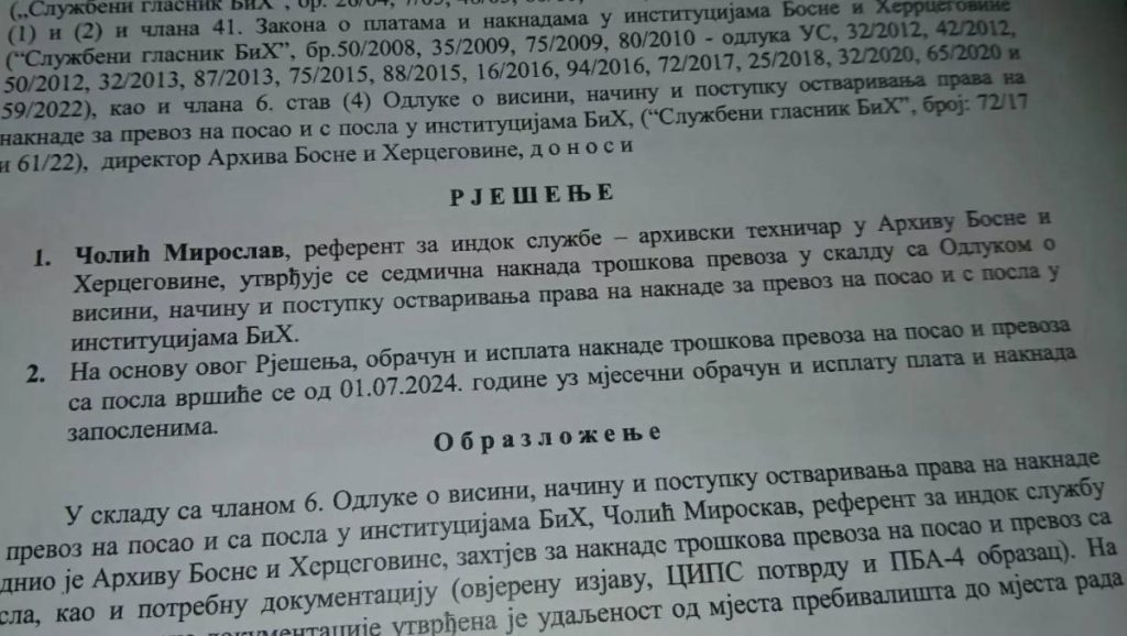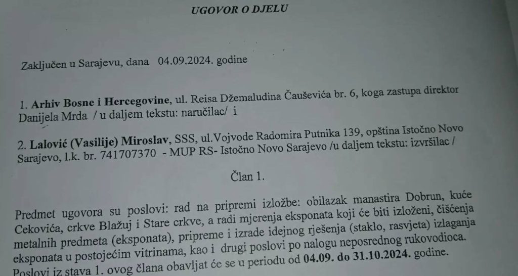 – Armin Valjević je ugovorno plaćen za popravke ormara i polica u depoima (2000 KM u 2024, pa ponovo 2100 KM u 2025), ali svjedoci potvrđuju da ga nikada nisu vidjeli u prostorijama Arhiva niti da je posao obavljen niti bi mogao biti obavljen bez podataka ko je i kada ulazio u depoe zbog osjetljivih podataka i historijske građe.