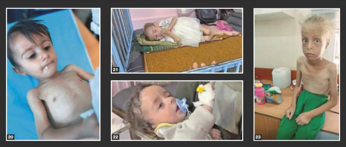 Dr. Mimi Syed, doktorica hitne medicine iz Washingtona, volontirala je u bolnici u centralnoj Gazi u decembru. Jednog dana izašla je iz bolnice Al-Aqsa u Deir al-Balahu i fotografisala djecu na ulici. Na slikama koje je poslala Haaretzu jasno se vide znakovi neuhranjenosti kod djece mlađe od sedam godina: prorijeđena kosa, promjena boje kose i mrlje po koži.