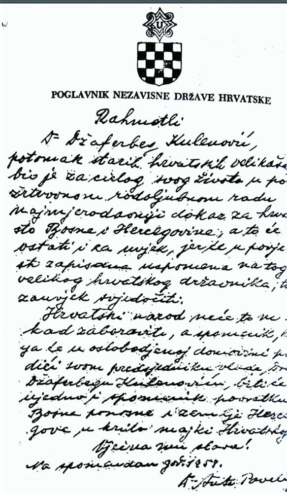 Džafer-beg Kulenović bio je dopredsjednik vlade takozvane Nezavisne Države Hrvatske, političar koji je u jednom dijelu svog života zagovarao autonomiju Bosne i Hercegovine, ali je završio kao istaknuti član kvislinškog režima koji je provodio zločinačku politiku.