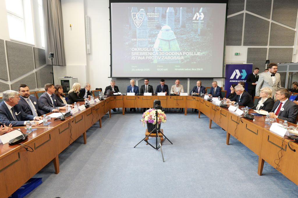 U Hrvatskom saboru održan je okrugli stol povodom 30. godišnjice Genocida u Srebrenici, u organizaciji Nacionalne koordinacije Bošnjaka u Republici Hrvatskoj i pod pokroviteljstvom saborskog zastupnika Armina Hodžića. Skupu su prisustvovali brojni ambasadori iz muslimanskih i zapadnih zemalja, uključujući predstavnike Bosne i Hercegovine. Kroz izlaganja pravnika, historičara, političkih predstavnika i svjedoka, snažno je poručeno da negiranje genocida nije samo zločin protiv istine nego i nastavak nasilja. Skup je završen svjedočenjem preživjelog Jakuba Salkića.