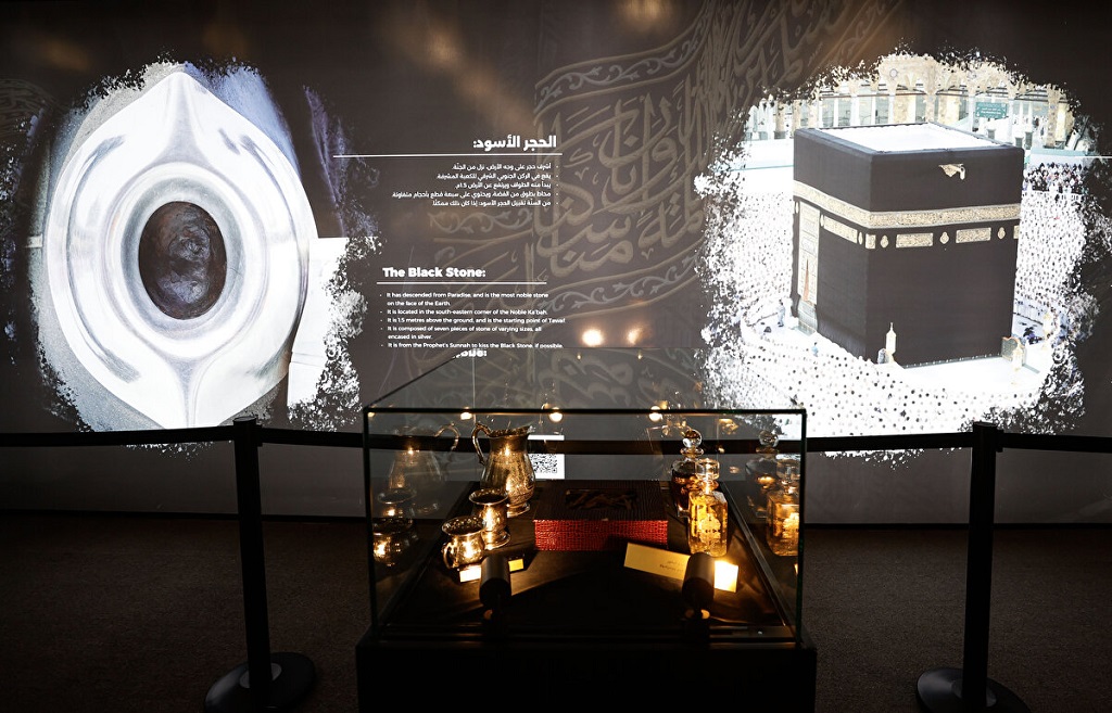 Na izložbi su prikazani pokrivači Kabe, zlatne i srebrne niti koje se koriste za šivanje pokrivača, prstenovi koji se koriste za pričvršćivanje pokrivača, kao i mirisi koji se nanose na Crni kamen.