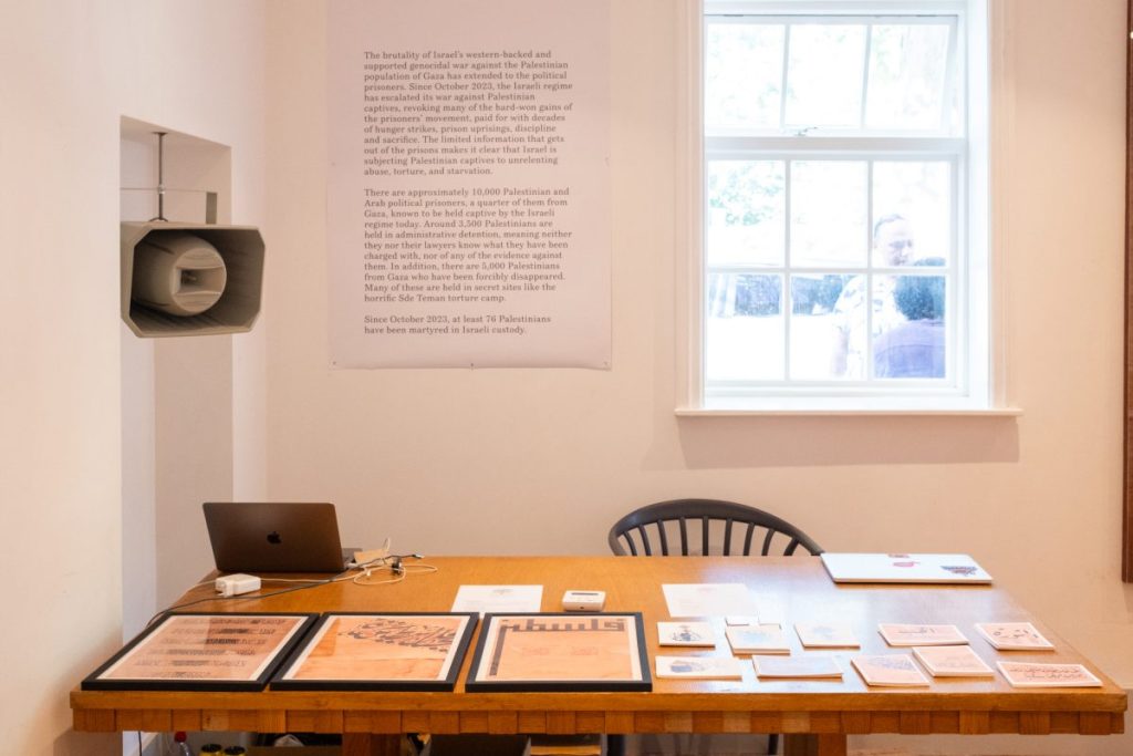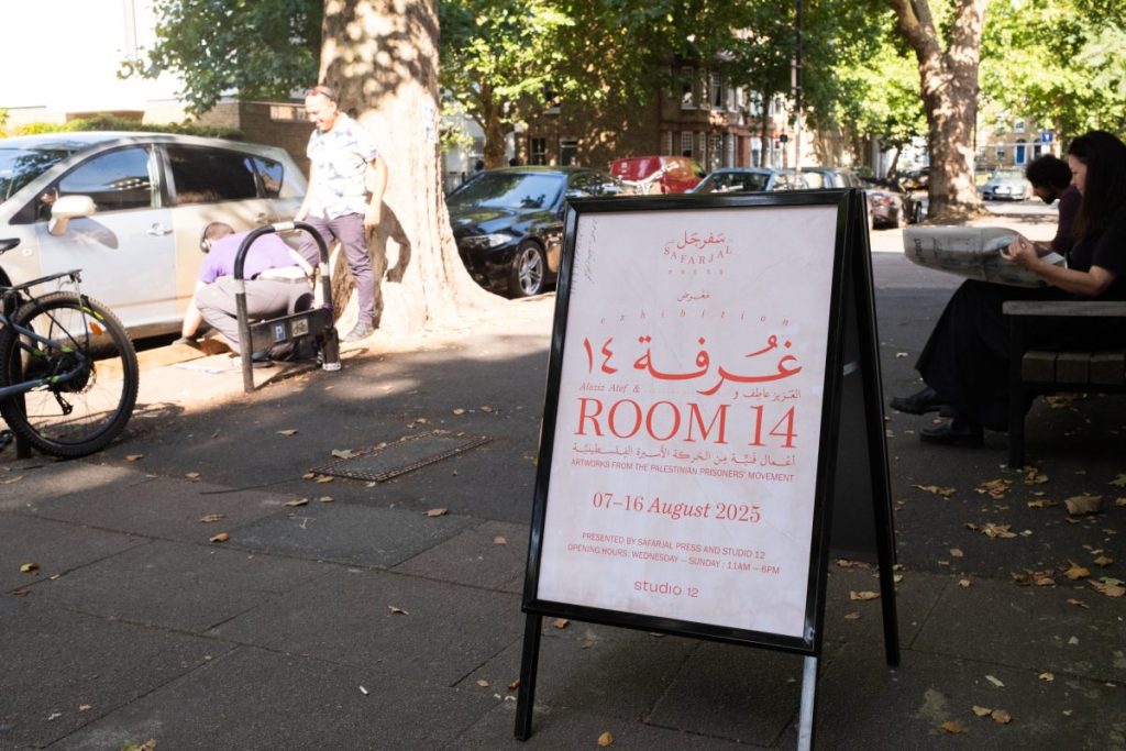 U londonskom Cornerstone Studios otvorena je izložba “Soba 14: Umjetnička djela Pokreta palestinskih zatvorenika”, čiji su autori Hazem Jamjoum, glavni urednik u Safarjal Pressu, i Tamara Al-Mashouk, direktorica Studija 12.