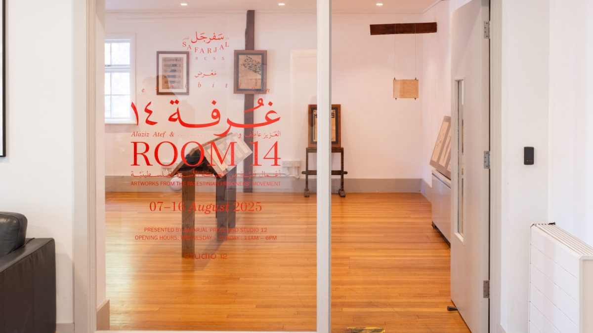 U londonskom Cornerstone Studios otvorena je izložba “Soba 14: Umjetnička djela Pokreta palestinskih zatvorenika”, čiji su autori Hazem Jamjoum, glavni urednik u Safarjal Pressu, i Tamara Al-Mashouk, direktorica Studija 12.