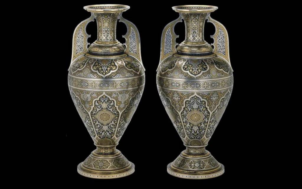 Postoje i ornamentalni dizajni specifični za Alhambru koji su očito inspirirali Zuloagu, najočitije vidljivi u njegovom paru urni (također naručenih od strane Morrisona) koje gotovo identično slijede dizajn poznatih Alhambra vaza. Velike ručke nalik krilima, monumentalna veličina (preko metra visine), islamski motivi i raspodjela damascenskog ornamenta Zuloaga urni pokazuju koliko je bio upoznat s Alhambra pandanima. Štaviše, njegova upotreba arabeski u damasceniranju inspirisala je druge damascenere iz Toleda da slijede njegov primjer.