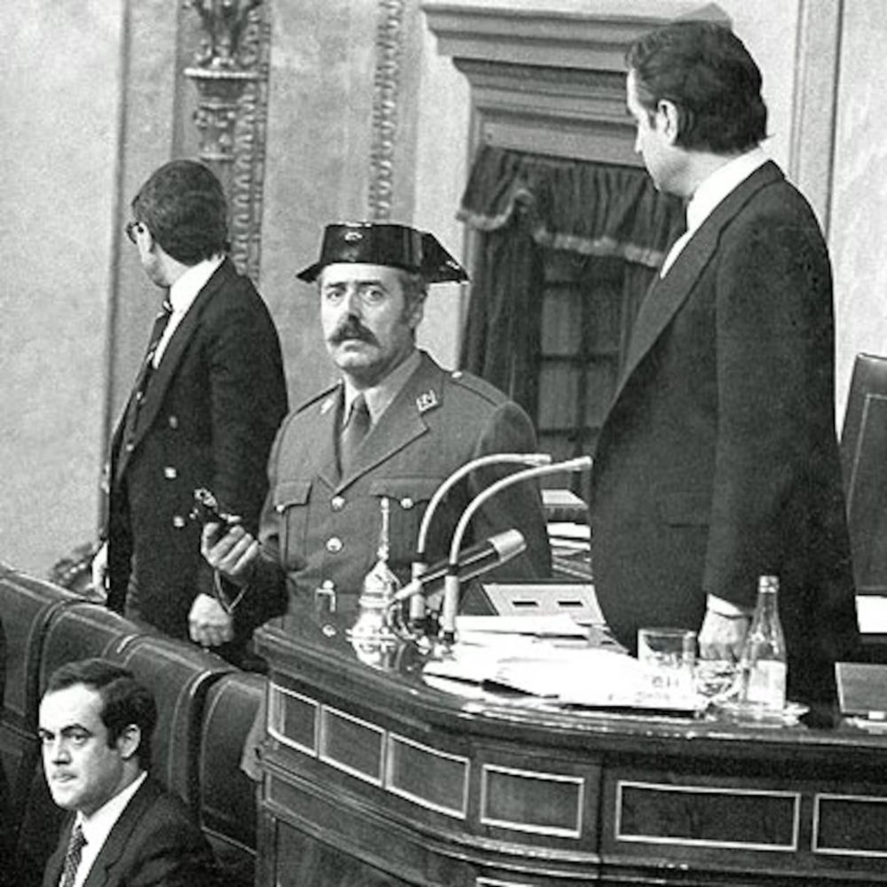 U januaru 1981. Suárez je podnio ostavku. Njegov pad potaknuo je nezadovoljne generale. U Corte su 23. februara upali pripadnici Civilne garde predvođeni pukovnikom Antoniom Tejerom i zarobili kompletan državni vrh. U Valenciji su tenkovi izišli na ulice pod zapovjedništvom generala Milansa del Boscha.