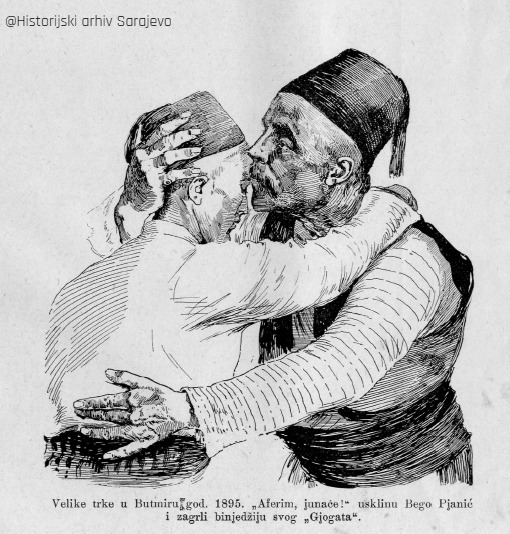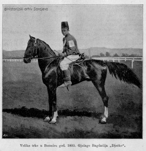 “Kao svake godine, tako je i ovo utrkivanje bosanskih konja namamilo velik broj domaće publike. Sedlarnica za bosanske konje, pokazuje nam prostoriju gdje se konji osedlaju i spreme za utrku. Publika tu razmotri konje po redu, pa se onda kladi koji će prvi uteći. Neda se opisati s kako živahnim interesom prate naše domaće binjedžije ove omiljene utrke, jer im je konj od vajkada mila životinja, ponekom dika i ponos, a utrkivanje na konjima junačka zabava. Delije ovogodišnje utrke bijahu dva krasna 4-godišnja alata Đulage Bagdadije ‘Dječko’ i ‘Elmas’ koji odniješe u svemu 5000 kruna nagrade. Prvi dan trke Đulaga je na ‘Dječku’ ispred ostale gospode činovnika i oficira utekao i odnio 1000 kruna nagrade, a Đulagin binjedžija je drugi dan u narodnoj utrci odnio na ‘Elmasu’ prvu nagradu od 4000 kruna. Pobjeda Đulagina izazvala je među domaćim binjedžijama veliko veselje. Obadva alata ‘Dječko’ i ‘Elmas’ su potomci državnih hangira i u Bosni odgojena. Đulagi su mnoge binjedžije nudili lijepih para za ove trkače, ali ih sahibija ne daje od sebe”, zapisano je u kalendaru “Bošnjak” 1896. godine.