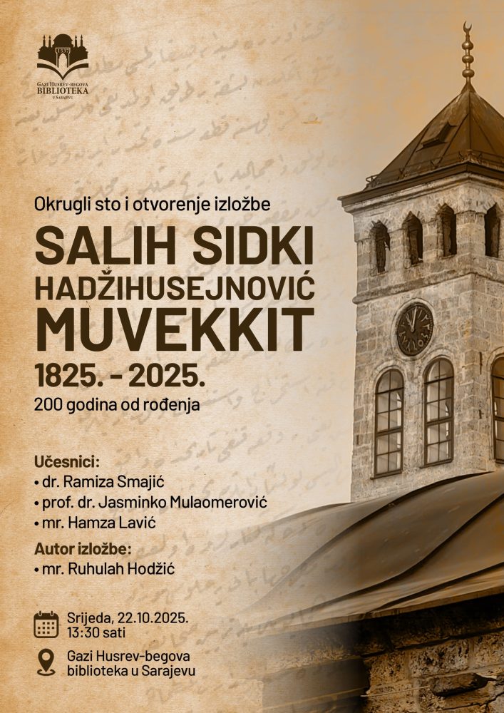 U Gazi Husrev-begovoj biblioteci u Sarajevu danas je otvorena izložba i održan okrugli sto pod nazivom „Salih Sidki Hadžihusejnović Muvekkit, 1825–2025 – 200 godina od rođenja“, kojim je obilježena 200. godišnjica rođenja jednog od najsvestranijih i najutjecajnijih bošnjačkih učenjaka 19. stoljeća.
