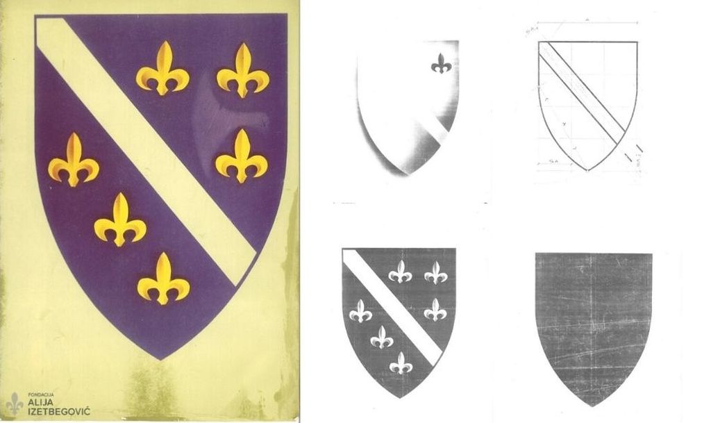 Imamovićevo rješenje oslanjalo se na heraldiku srednjovjekovne Bosne, konkretno na grb dinastije Kotromanić i simboliku vezanu za kralja Tvrtka. Bijelo polje, plavi štit, kosa traka i šest zlatnih ljiljana nisu izmišljeni devedesetih, nego preuzeti iz mnogo starijeg historijskog sloja bosanske državnosti. Prve skice i prve zastave nastale su uz pomoć dizajnera Zvonka Bebeka, a materijali i inspiracija dolazili su i iz građe pohranjene u Zemaljskom muzeju u Sarajevu.
