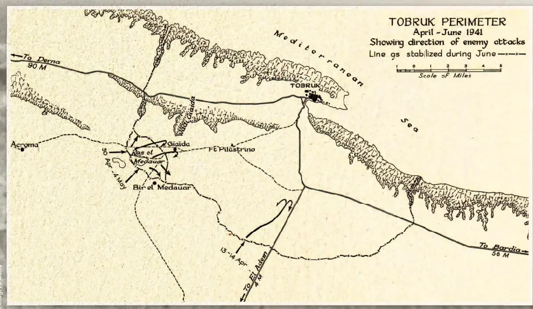U aprilu 1941. godine, njemačke i italijanske snage započele su opsadu Tobruka, ubrzo shvativši da su teško podcijenile savezničke jedinice stacionirane u ovom gradu. Do proljeća te godine, njemački afrički korpus (Afrika Korps) nezadrživo je napredovao preko istočne Libije prema Egiptu i Sueckom kanalu. Međutim, na njihovom putu stajao je prašnjavi lučki grad koji će postati simbol prkosa u pustinji.