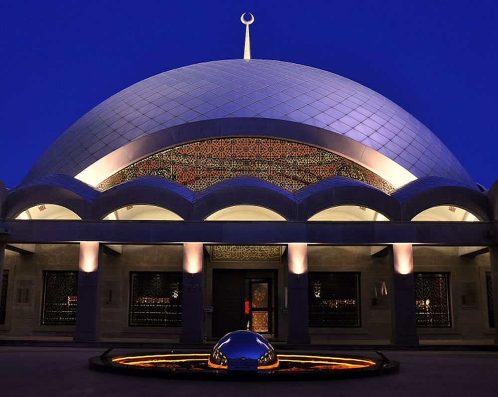 Objekat ima jednu kupolu i dvije munare visoke po 35 metara, dok su tri strane džamije okružene velikim staklenim površinama koje unutrašnjost ispunjavaju prirodnim svjetlom. Prozori su oblikovani tako da podsjećaju na stranice Kur’ana, što dodatno naglašava simboliku prostora.
