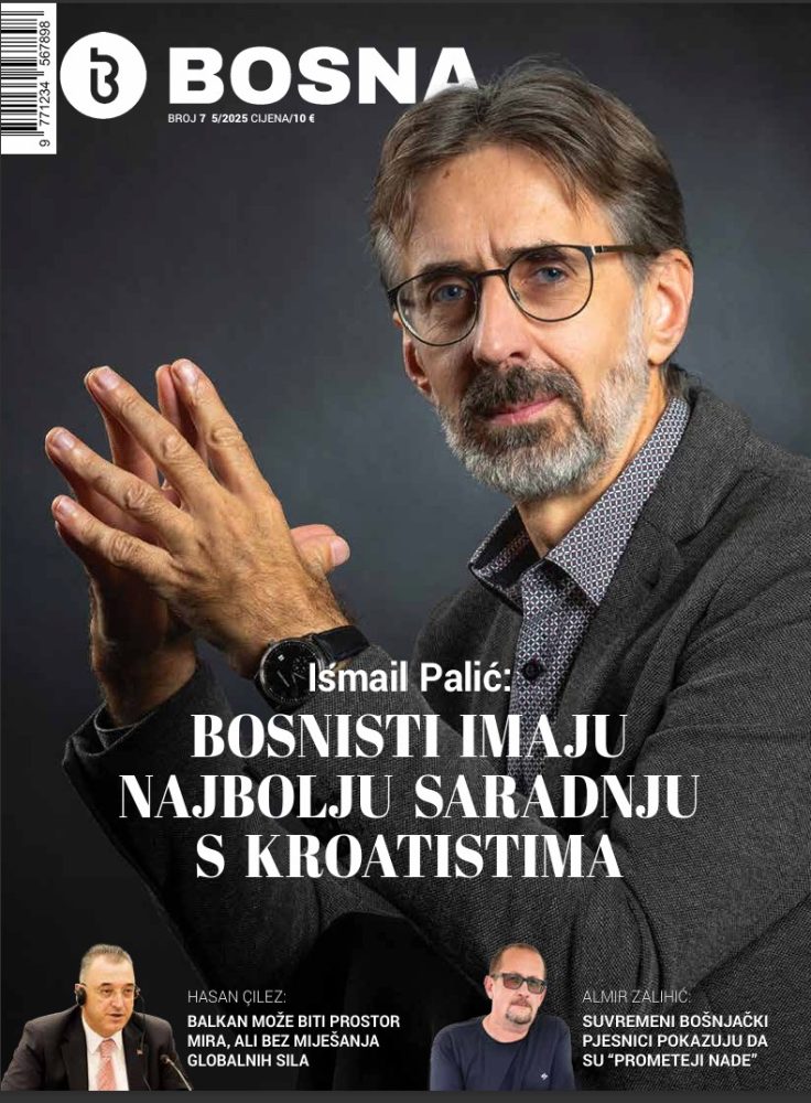 Sedmi broj časopisa „Bosna“ (5/2025) donosi širok tematski luk – od jezika i identiteta, preko društvenih napetosti i migracija, do kulture pamćenja i savremenih književnih glasova. U uvodnoj riječi glavni urednik Filip Mursel Begović podsjeća da se nijedna zajednica ne može „spasiti preko noći“ i da se za ono čemu se nadamo treba izboriti – procesom, odgovornošću i nužnim kompromisima, uz onu jednostavnu, ali tešku lekciju: „proklijati, a ne proklinjati“.