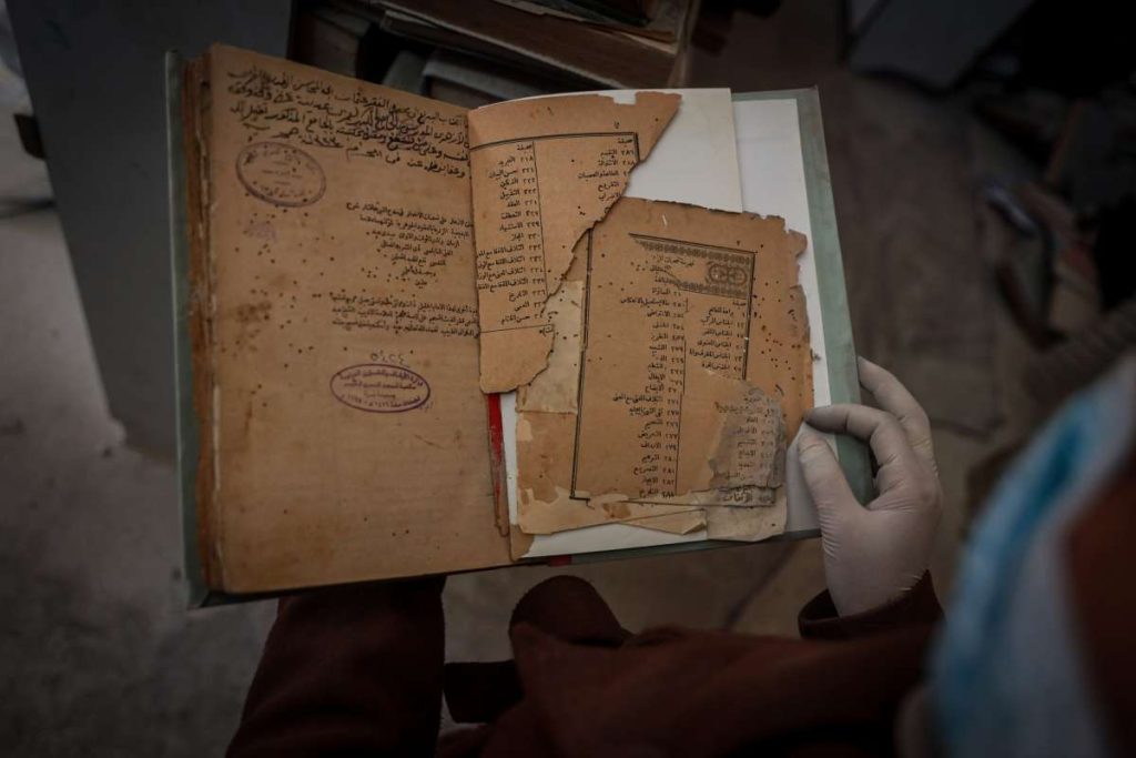Unutar prašnjave prostorije jedne od najstarijih biblioteka na palestinskim teritorijama, grupa volontera iz Gaze marljivo radi na spašavanju onoga što je ostalo od njihove drevne kulturne baštine.