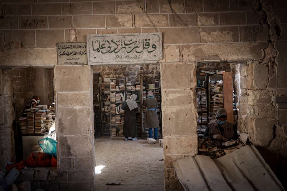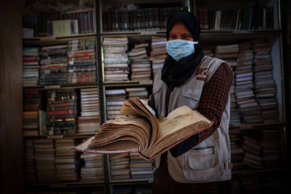 Unutar prašnjave prostorije jedne od najstarijih biblioteka na palestinskim teritorijama, grupa volontera iz Gaze marljivo radi na spašavanju onoga što je ostalo od njihove drevne kulturne baštine.
