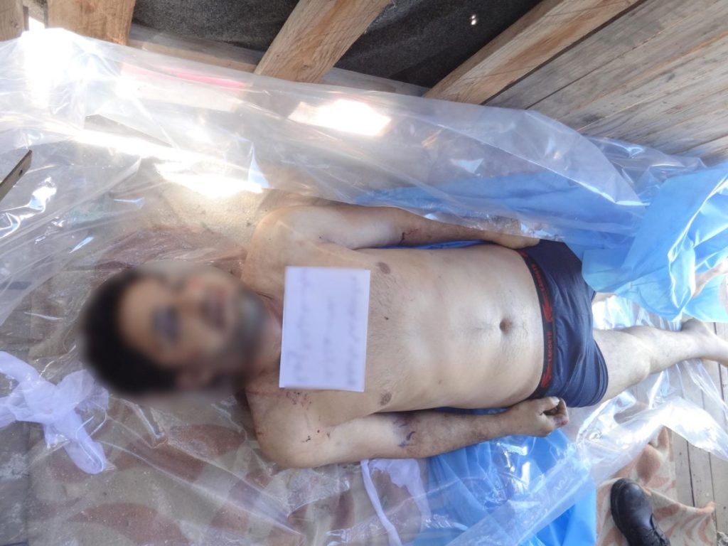 Drugi muškarac, broj 4038, leži nag u zadnjem dijelu kombija, naborane kože, isprskan krvlju i prekriven muhama. Poznati opozicijski aktivista Mazen al-Hamada, broj 1174, leži u zatvorskoj uniformi na mramornom podu, sa zapešćima obilježenim tragovima vezivanja. Njegova bosa stopala su modra, što svjedoči o premlaćivanju. Broj 2389 je novorođenče.