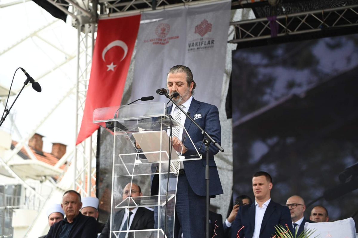 Erkan Ömeroğlu, zamjenik generalnog direktora Generalne direkcije vakufa Republike Turske, tokom današnje svečanosti je istakao da svi zajedno dijelimo radost ponovnog otvaranja ove historijske i duhovne građevine, koja stoljećima zrači duhovnim svjetlom na ovim prostorima. U svom obraćanju, kazao je da ovom prilikom prenosi selame iz Turske, “posebno selame predsjednika Recepa Tayyipa Erdoğana, ministra Mehmeta Nurija Ersoya i generalnog direktora Sinana Aksua”.