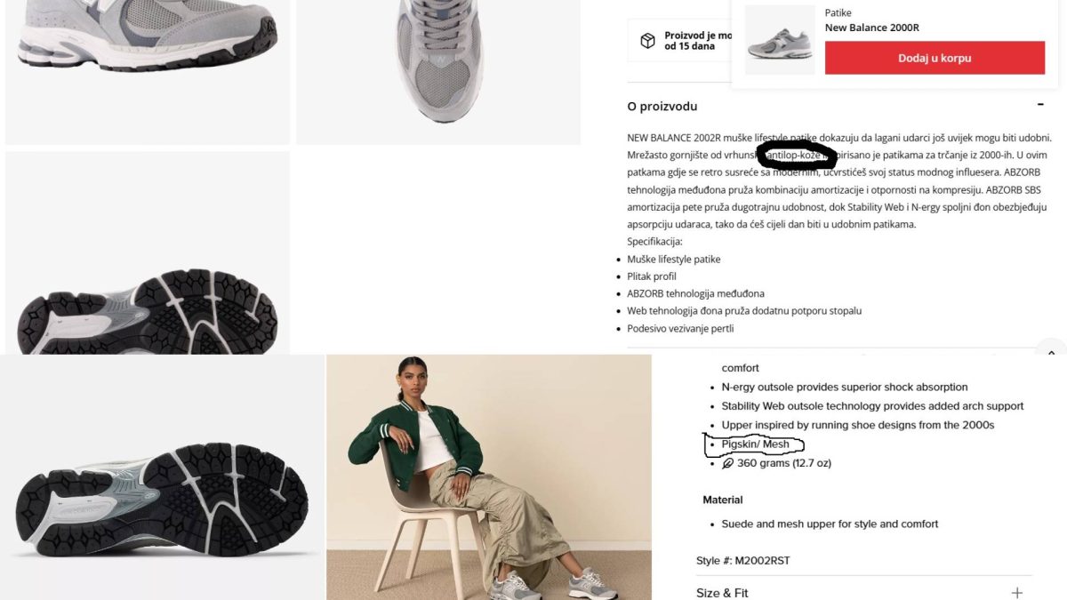 Nakon ovakvih slučajeva, postavlja se pitanje da li, ko i koliko provjerava slične situacije na domaćem tržištu? Malim uvidom u online prodajne stranice u Bosni i Hercegovini, pronašli smo jedan od modela, i to New Balance M2002RST, za koji se na web-stranicama domaćih prodavača ne navodi da je riječ o svinjskoj koži. Za pojedine druge modele u opisu stoji izraz „antilopska koža“, a tek kada kupac klikne na dio s detaljnim specifikacijama, može uočiti da proizvod zapravo sadrži 42% svinjske kože.