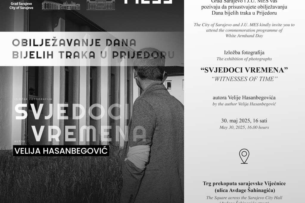Izložba fotografija „Svjedoci vremena“ fotografa Velije Hasanbegovića, u organizaciji Grada Sarajevo i Javne ustanove MES bit će otvorena 30. maja u 16.00 sati, na trgu preko puta Vijećnice povodom obilježavanja 33. godišnjice zločina u Prijedoru i 31.maja dana kada se obilježava Dan bijelih traka u Prijedoru.