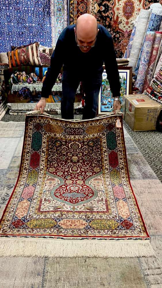Prelazi rukom preko Hereke tepiha, svilene niti hvataju svjetlost.