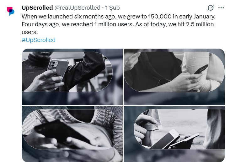 Na zvaničnom X nalogu UpScrolleda je 1. februara 2026. objavljeno da broje dva i pol miliona korisnika. “Kada smo pokrenuli platformu prije šest mjeseci, početkom januara smo narasli na 150.000 korisnika. Prije četiri dana dostigli smo milion korisnika. Od danas smo dosegli 2,5 miliona korisnika.” stoji u objavi.