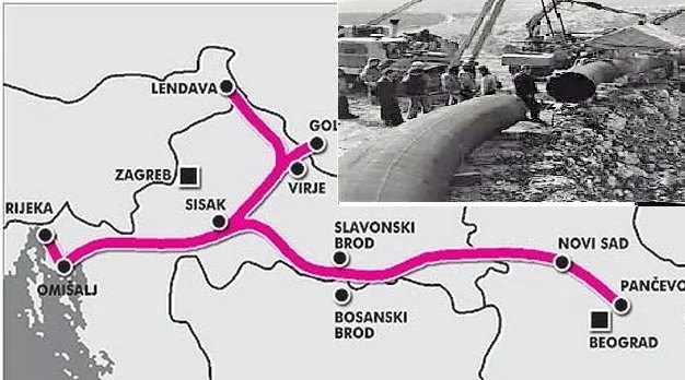 Sve tri kompanije uložile su po 15 miliona dolara osnivačkoga kapitala, a cijeli projekt koštao je 1,5 milijardi dolara. Stvar je išla brzo. Nakon početnih svađa o trasi – Bosna je htjela da naftovod ide preko te republike – stvar je navodno presjekao predsjednik Tito, koji se odlučio za hrvatsku trasu. Stvar je bila i logična. Kroz Hrvatsku je mnogo manje prirodnih prepreka naftovodu, pa je gradnja bila brža, lakša i jeftinija. Gradnja naftovodno-skladišnog sustava na terminalu Omišalj počela je 23. decembra 1975. Četiri godine kasnije, 25. oktobra 1979., u Omišlju je prihvaćen i iskrcan prvi tanker sa sirovom naftom, a 22. decembra 1979. – na Dan Armije – bio je pušten u rad. U augustu 1989. na dionici Sisak – Gola omogućen je transport nafte i reverzibilnim pravcem, iz smjera Mađarske.