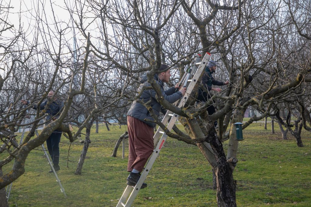 „Najgore ruglo su ovi ljetorasti koji nisu ni prošle godine odrezani“, govori Petruševečki džematlija Sead Jašarević dok stoji visoko u krošnji jabuke u džamijskom dvorištu i velikim škarama reže suvišne grane, „koliko godina imam, ali još uvijek se penjem k'o vjeverica“.