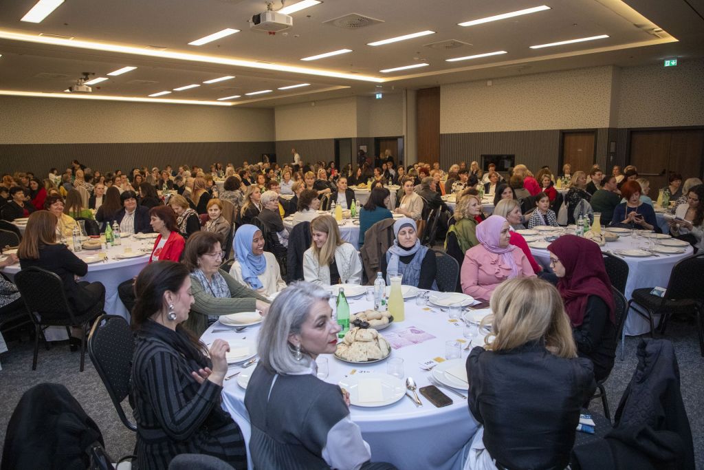 Stolovi su se brzo popunjavali, a među okupljenima su bile žene svih generacija, od studentica i mladih majki do onih koje već desetljećima nose iskustvo života u zajednici. U toj raznolikosti prepoznavala se i stvarnost Bošnjaka – između tradicije i savremenosti, između onoga što se želi sačuvati i onoga što se mora mijenjati da bi se bilo u korak sa vremenom.